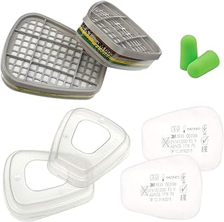 3M 6059 Filter ABEK1 (1 Paar) mit 3M 501 Filterdeckel (1 Paar) mit 3M Partikelfilter 5935 P3 R (1 Paar) und mit SmartProduct Gehörschutzstöpsel
