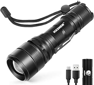 LED XHP50 Flashlight 4000 Lumens Rechargeable Waterproof Tactical Torch Zoomable Handheld Flashlight with 3 Modes for Camping Hiking Fishing Outdoor Adventures