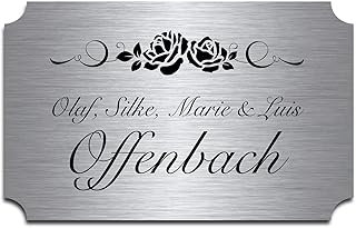 Edelstahl Türschild mit Gravur | Namensschilder Briefkastenschild selbstklebend oder blanko 12x7,5 cm mehr als 80 Motive Klingelschild Türschilder für die Haustür mit Namen selbst gestalten