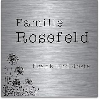 Edelstahl Türschilder mit Gravur | Namensschilder Briefkastenschild selbstklebend oder mit Bohrlöcher ab 8x5 cm eckig mehr als 30 Motive Klingelschild - Türschild für die Haustür mit Namen selbst gestalten