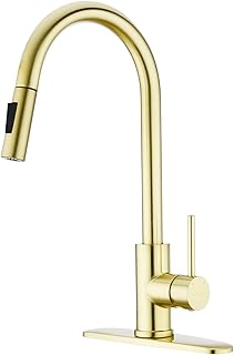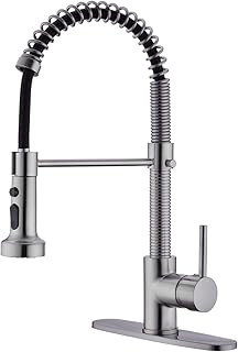 EKRTE Küchenarmatur, gebürstetes Nickel, Küchenarmatur mit Sprüher mit einem Griff, hoher Lichtbogen, ausziehbarer Küchenarmatur, 1 oder 3 Löcher, kommerzielle Küchenarmatur mit Deckplatte
