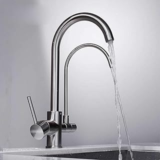 MENATT Filter Küchenarmatur mit Trinkwasserhahn, hoher Lichtbogen-Küchenarmatur, 3-Wege-Küchenarmatur, 3-in-1-Spülbecken-Mischbatterie (gebürstetes Nickel)