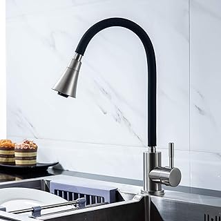Küchenarmatur, Edelstahl, Küchenarmatur, Spültisch-Wasserhahn, ausziehbare Küchenarmaturen, gebürstetes Nickel, Küchenarmatur, Küchenarmatur für Spüle (schwarz)