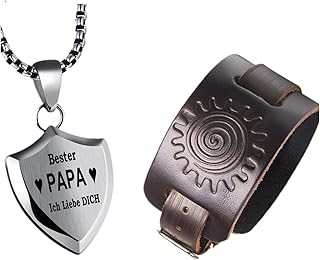 Vatertagsgeschenk Herren Armband Anhänger Schmuck Set mit Gravur Bester Papa Ich Liebe Dich, Schild Anhänger mit Halskette braun Geflochten Lederarmband Geschenkbox für Dad Vater Papa Geschenk