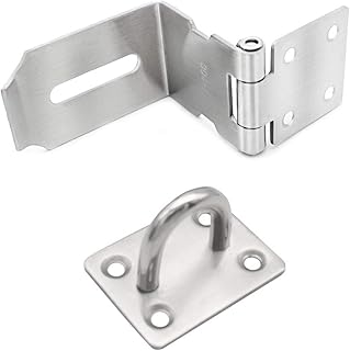 Sicherheitsüberfalle Tür Haspe Edelstahl Schloss Vorrichtung Sicherheits Überfalle mit Vorhängeschloss Schrauben Sicherheits Überfalle Verrieglung Klappriegel für Türfensterschrank Garage Garden