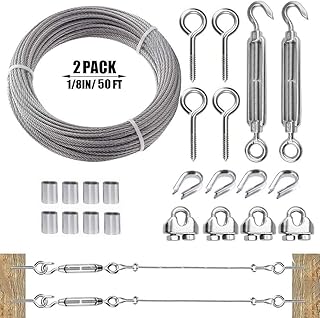 TooTaci Edelstahl Seil 3mm, 15M Stahlseil Edelstahl,Drahtseil mit ösen, M6 Spannschloss Seilspanner Edelstahl,M3 Drehseilklemmen,M3 Drahtseilkauschen,M3 Drahtseilhülsen,M6 Ösen schrauben