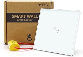 BSEED Single Live WiFi-Berührungssensorschalter (2.4GHz Wifi KEIN Neutralleiter Erforderlich) 1 Fach 1 Wag Weiß Smart Life/Tuya/Google Alexa-kompatible Wandleuchtenschalter für Glasscheiben
